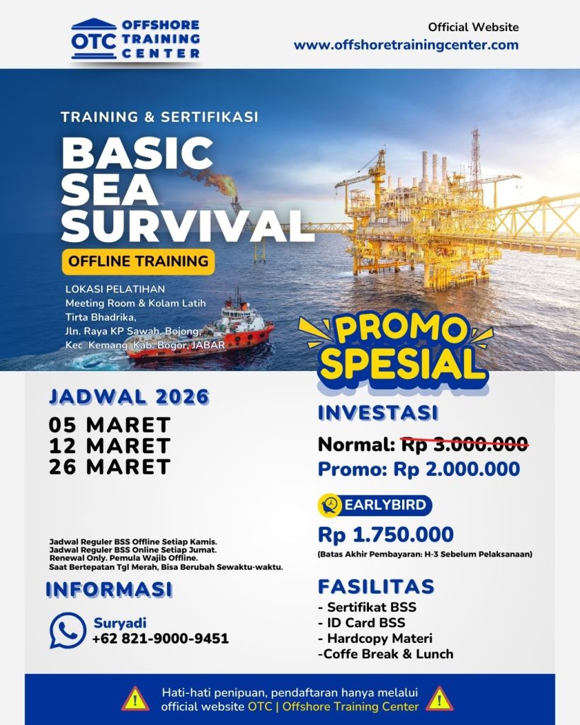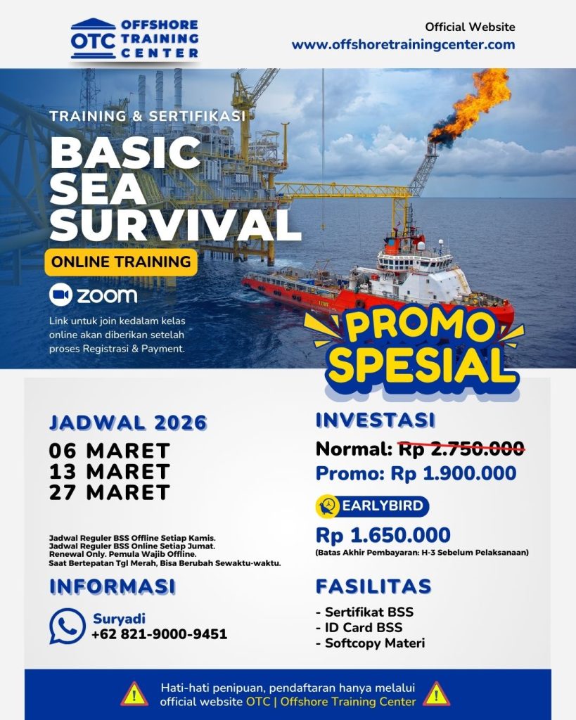 Pentingnya BSS untuk pekerja offshore – Bagi sebagian orang, bekerja merupakan tuntutan hidup yang harus dijalani untuk memenuhi kebutuhan sehari-hari. Ada banyak bidang pekerjaan yang ada di bumi ini. Ada yang bekerja di darat, di udara, dan juga di offshore seperti pekerja di bidang minyak dan gas. Tidak mudah bagi seseorang untuk bekerja di offshore, terlebih bila harus stay di living quarter platform. Bukan saja karena terbatasnya akomodasi yang ada di sana, tetapi juga karena kompetensi dari skill mereka menjadi dasar yang utama. Maka dari itu, kemampuan Basic Sea Survival merupakan keharusan untuk para pekerja offshore.